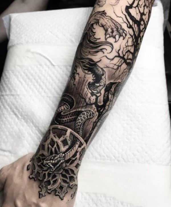 小臂纹身图 包小臂的9张暗黑创意设计纹身图片