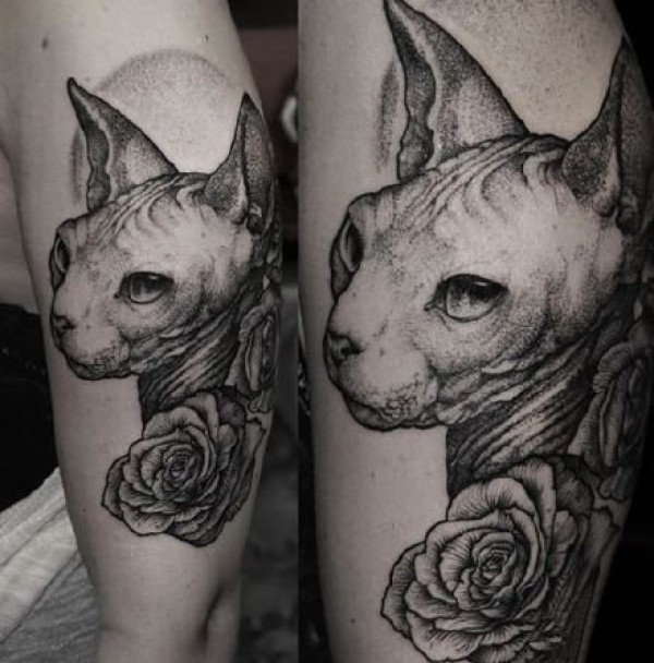 斯芬克斯猫的一组黑灰猫纹身图片