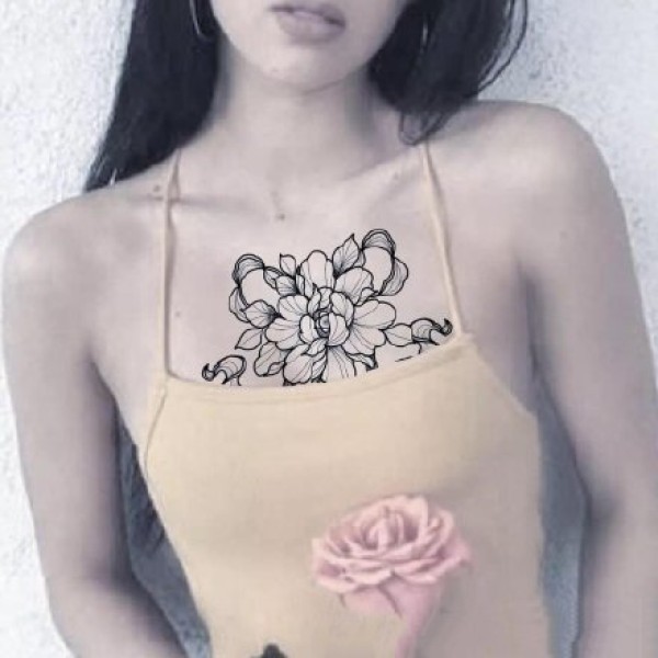 大臂素花纹身 9款女士的大臂黑灰花朵植物纹身图案