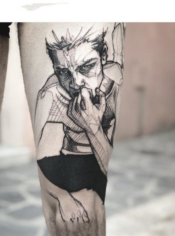 来自法国艺术家的创意人物点线设计纹身图案