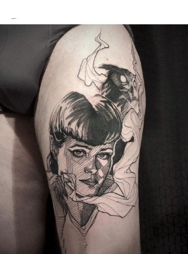 点线纹身 设计感极强的写实与抽象结合的纹身图片