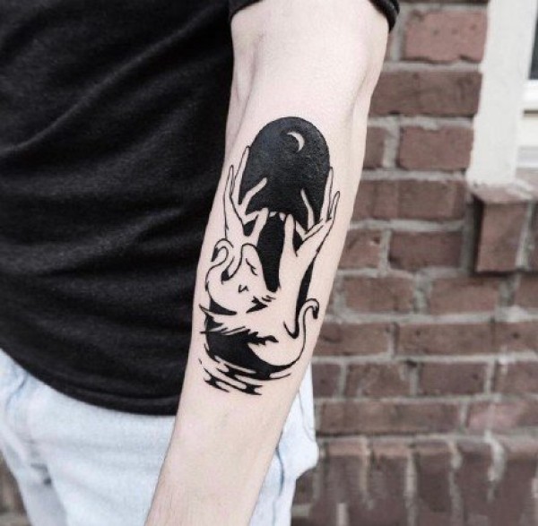 心脏纹身图案 女生手臂上黑灰纹身心脏纹身图案