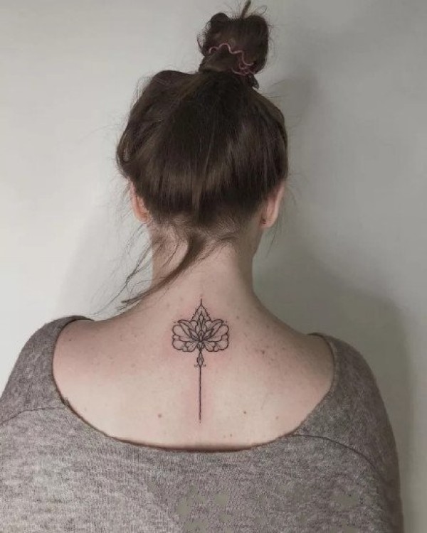 女生后腰纹身黑白灰风格抽象线条纹身图案
