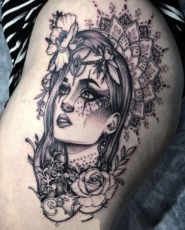 曼陀罗女人纹身 9款女郎和曼陀罗搭配的纹身图案