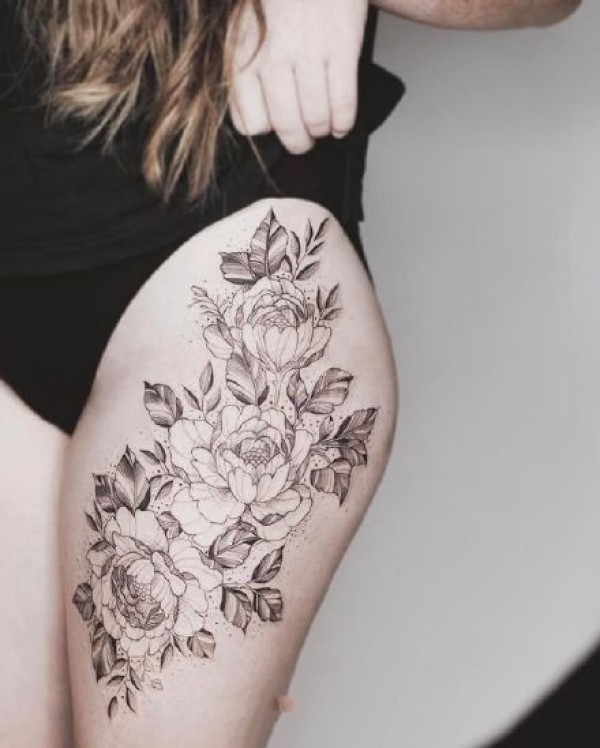 性感大腿纹身 女士大腿处性感的花花纹身图片