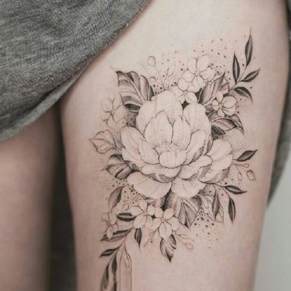 性感大腿纹身 女士大腿处性感的花花纹身图片