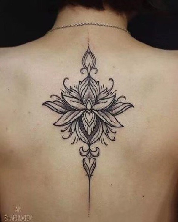 适合女生纹在后背脊柱处的唯美梵花纹身图案