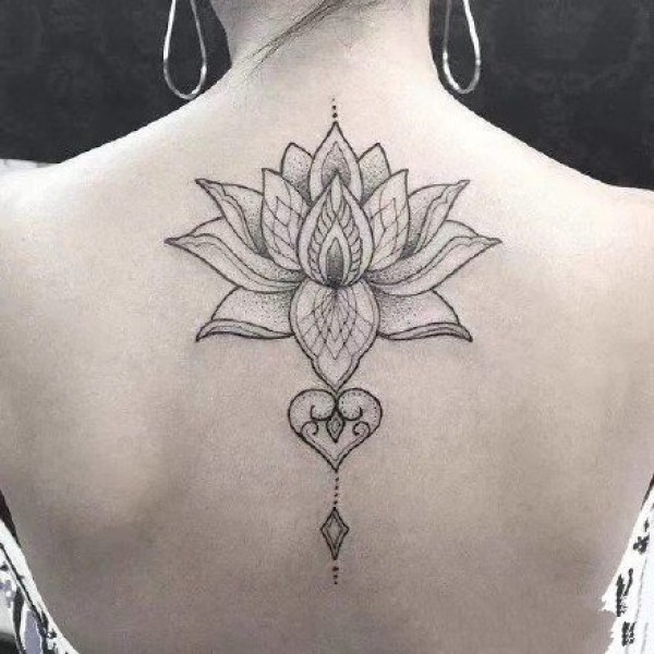 后背纹身梵花 女生后脖子到后背脊柱处的莲花梵花纹身图片