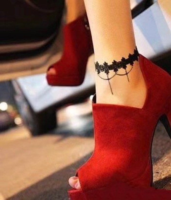 脚踝小清新纹身 多款简单线条纹身素描脚踝小清新纹身图案