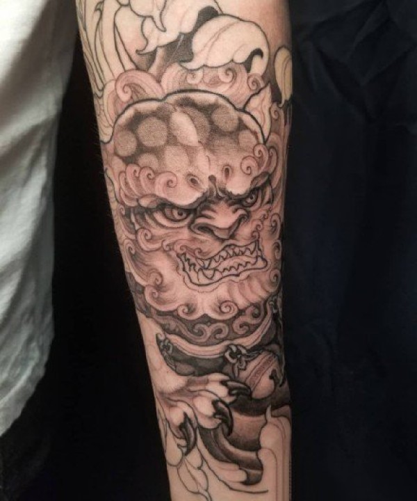 纹身新传统图片 新传统风格的一组包臂唐狮等纹身图片