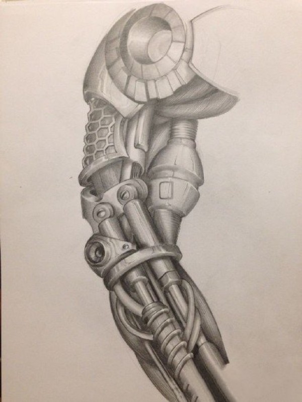 让人感觉无比有力的男性生物机械花臂纹身图案