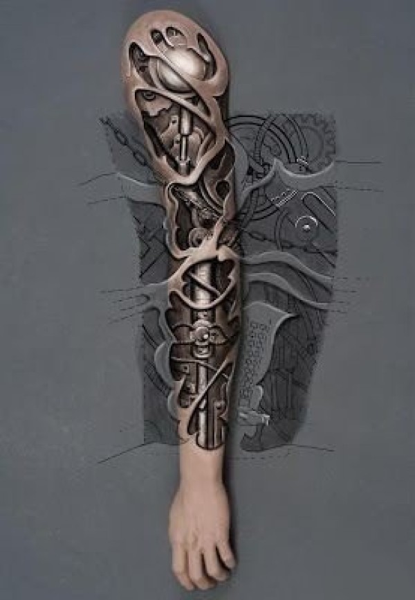 让人感觉无比有力的男性生物机械花臂纹身图案