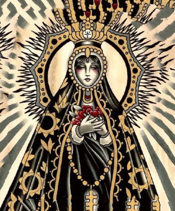 圣母纹身 Oldschool风格的西方宗教圣母纹身图案