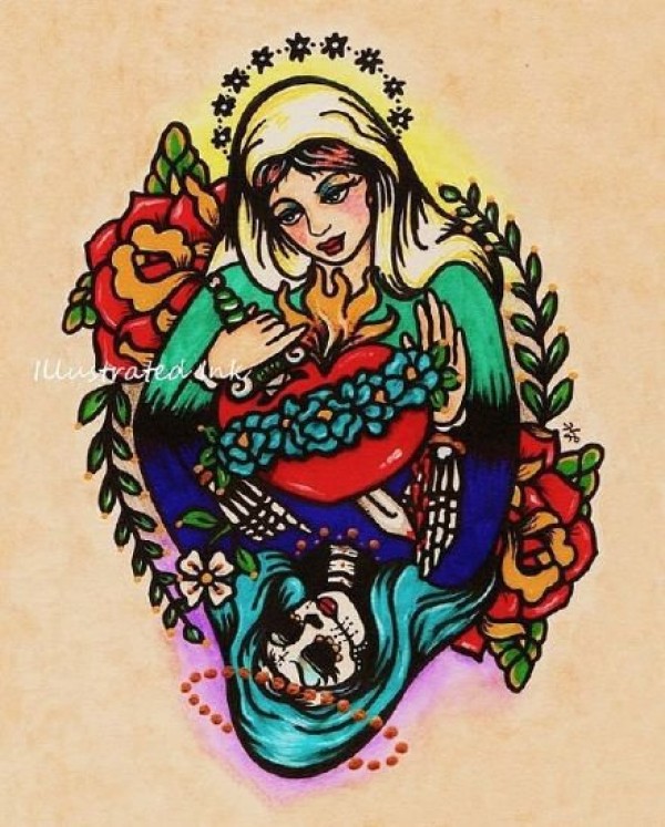 圣母纹身 Oldschool风格的西方宗教圣母纹身图案