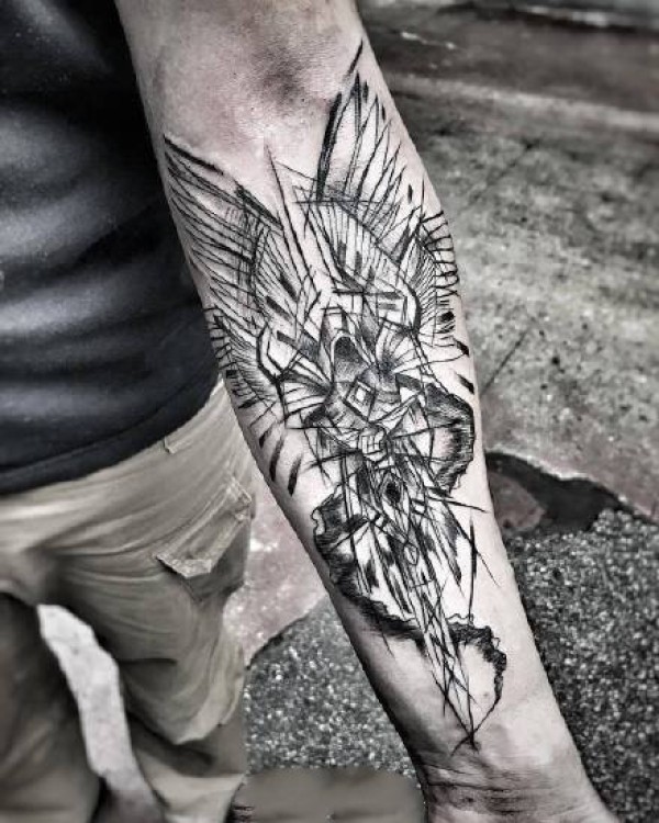 点线纹身 设计感极强的写实与抽象结合的纹身图片