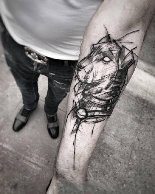 点线纹身 设计感极强的写实与抽象结合的纹身图片