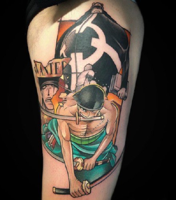 腿部点刺日本漫画海贼王全体成全纹身图案