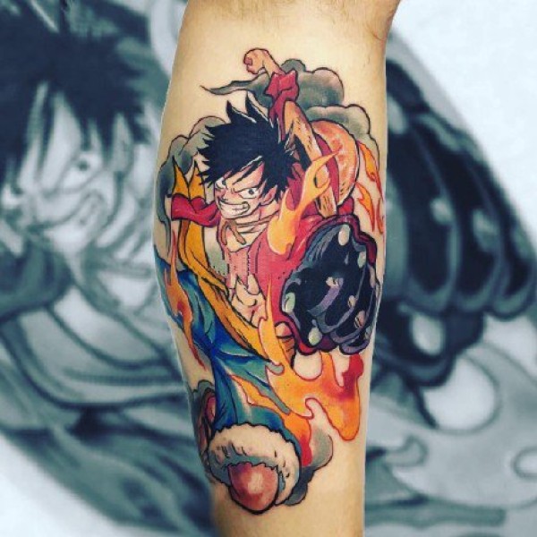 腿部点刺日本漫画海贼王全体成全纹身图案