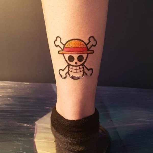 腿部点刺日本漫画海贼王全体成全纹身图案