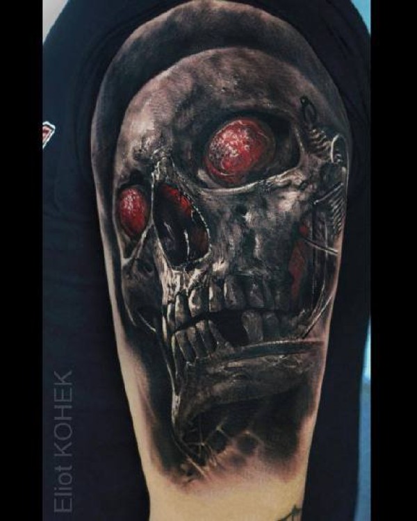 欧美超暗黑的写实骷髅等纹身图