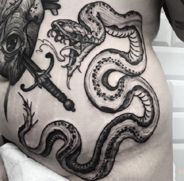 性感美女大腿部细腻漂亮的蛇纹身图片