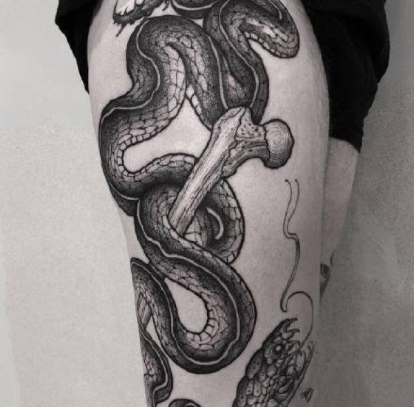 性感美女大腿部细腻漂亮的蛇纹身图片