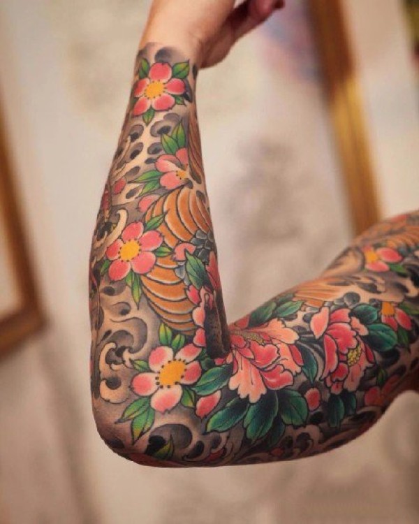 传统纹身图案 27组传统风格的包臂手臂纹身作品图案