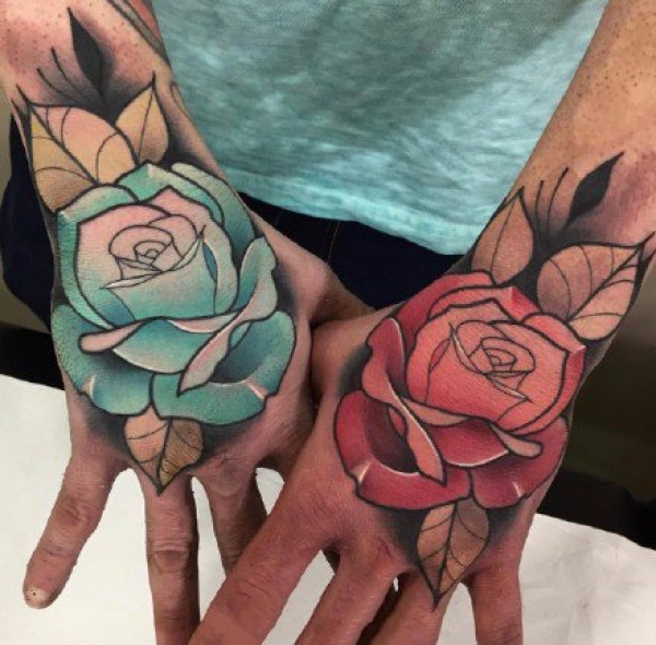 红玫瑰纹身 漂亮唯美的玫瑰花纹身图案