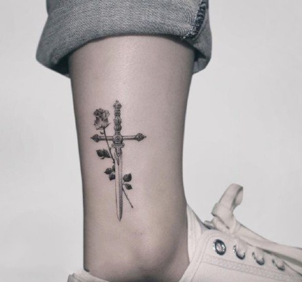 小剑纹身 黑灰色的一组9张小剑纹身图案