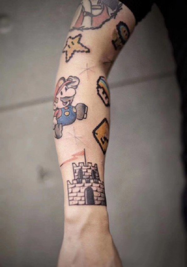 欧美拼接纹身 女生手臂上植物和人物拼接纹身图片