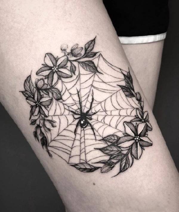 蜘蛛网纹身图案 黑灰色调个性十足的蜘蛛或蜘蛛网纹身图案