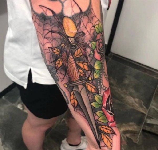 大臂上的蜘蛛纹身