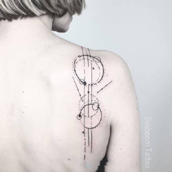 点线纹身 设计感极强的写实与抽象结合的纹身图片