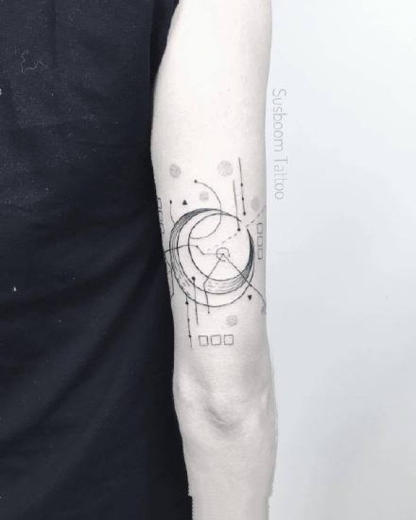 点线纹身 几何线条硬朗风格的9张黑灰纹身图片