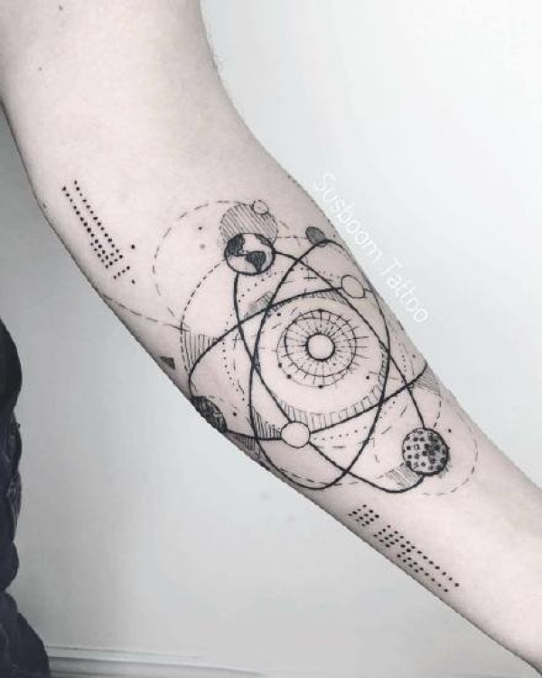 点线纹身 设计感极强的写实与抽象结合的纹身图片