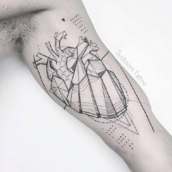 点线纹身 设计感极强的写实与抽象结合的纹身图片
