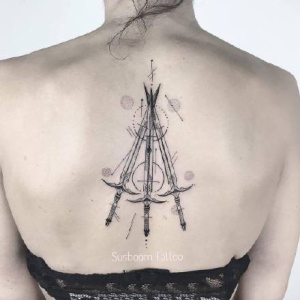 点线纹身 几何线条硬朗风格的9张黑灰纹身图片