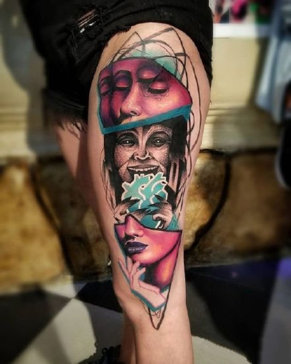 女生人物纹身图案 女生小腿上女生人物纹身图案
