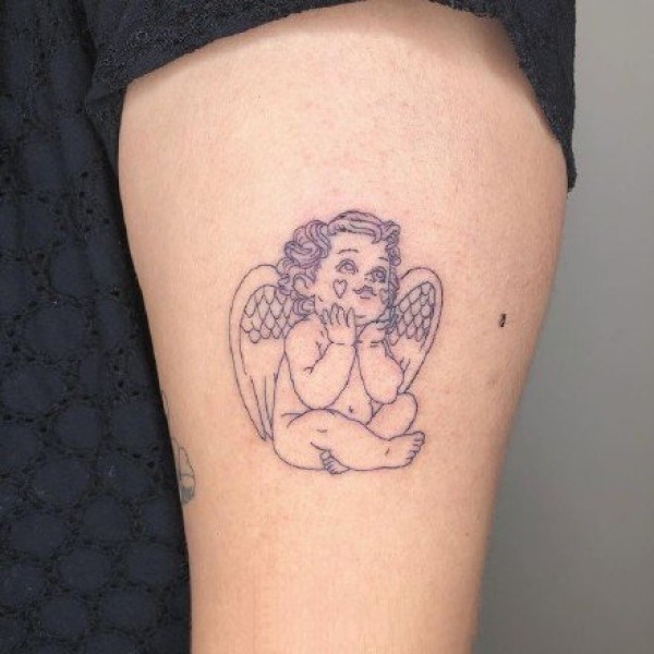 纹身小天使 西方爱神丘比特小天使的纹身图片