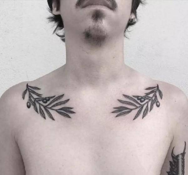 肩部点刺的橄榄枝纹身图案