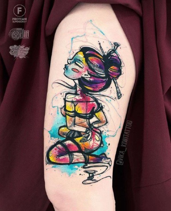 15款水彩纹身日本艺伎纹身人物名妓纹身图案