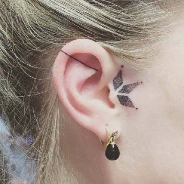 耳朵上的9张极简色彩小纹身图片