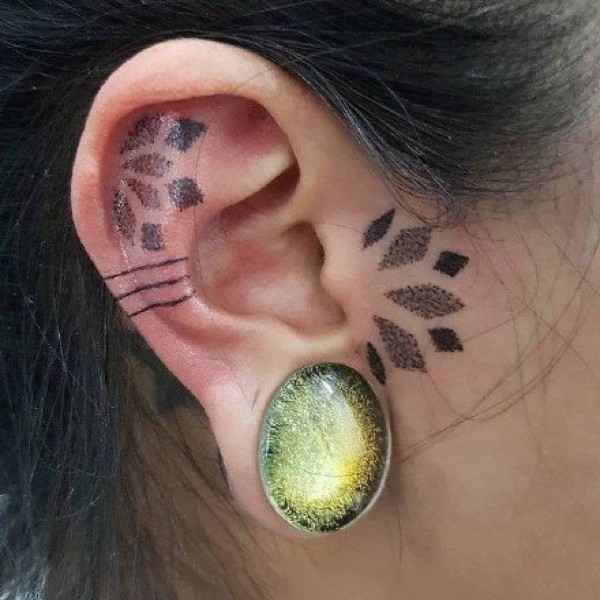 耳朵纹身--一组纹在耳朵里面的简约小清新纹身图案