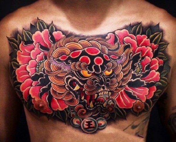 花胸纹身--一组男性霸气的大花胸纹身图案作品欣赏