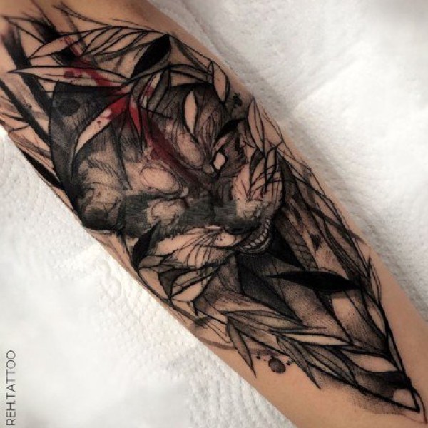 泼墨纹身 欧美泼墨风格的暗水彩动物纹身图案
