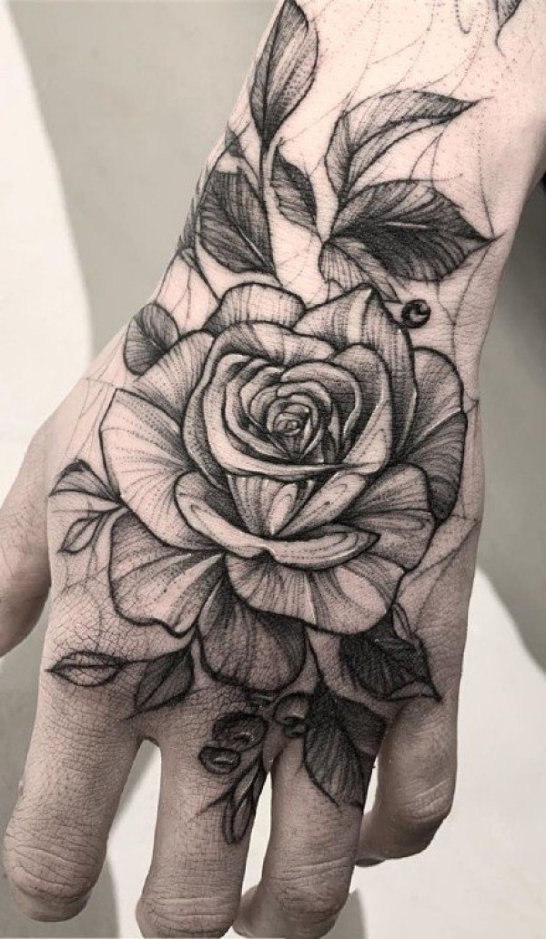 40款满手背玫瑰花纹身图案