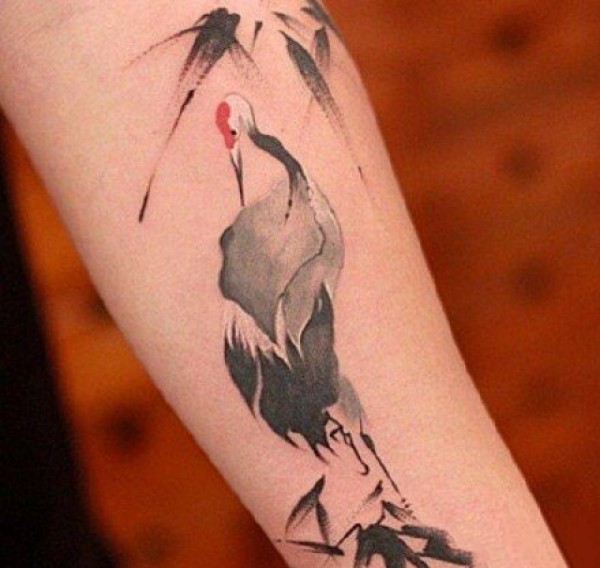 仙鹤纹身 9张水墨中国风的仙鹤纹身图片