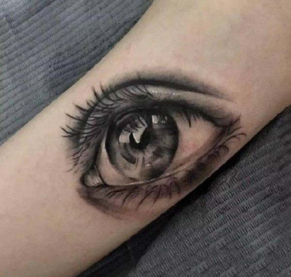 纹身眼睛纹身图案 男性手臂上穿透灵魂的黑色素描纹身眼睛纹身图案