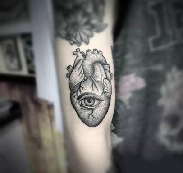 纹身眼睛纹身图案 男性手臂上穿透灵魂的黑色素描纹身眼睛纹身图案