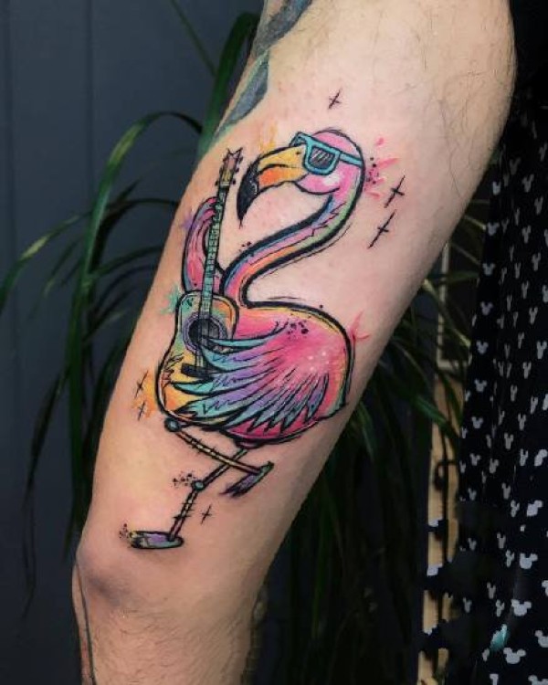 火烈鸟纹身图_14张粉红色的火烈鸟纹身图案作品图片